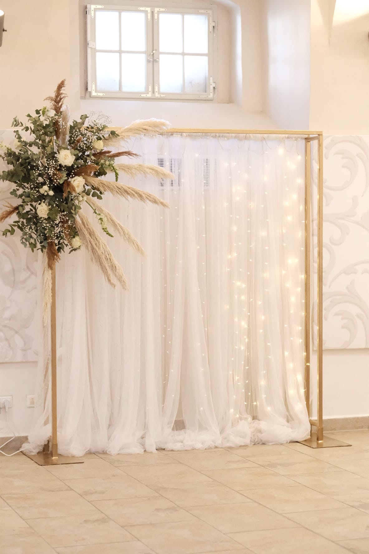 Prekrásne priestory na Holíčskom zámku sme ozdobili našimi kvetinovými aranžmánmi. Spojenie cortadérii, eukalyptu, krémových a bielych kvetov vytvorilo romantickú, no zároveň nadčasovú atmosféru. Výsledok - nekonečná nádhera.